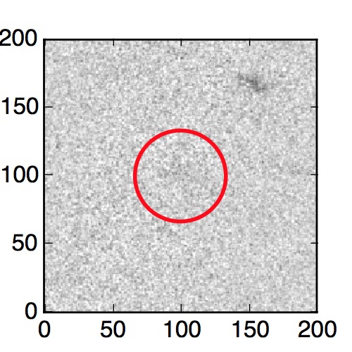 The red circle in the various panels is 1" in radius. The images are 6"x6".
