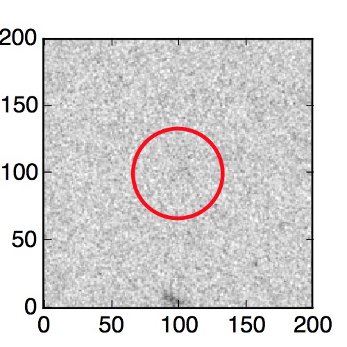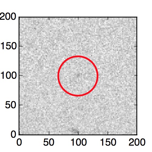 The red circle in the various panels is 1" in radius. The images are 6"x6".