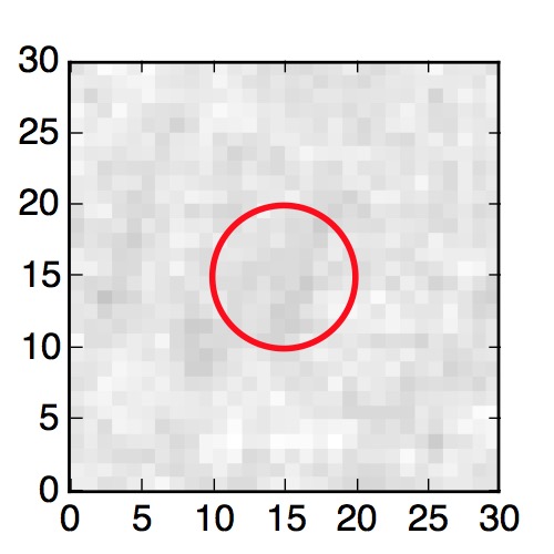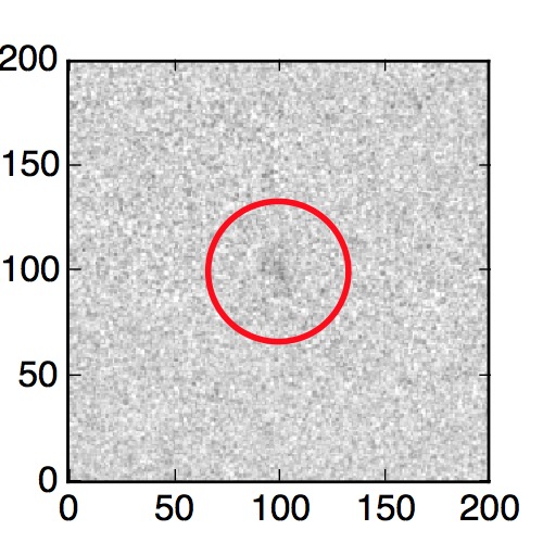 The red circle in the various panels is 1" in radius. The images are 6"x6".