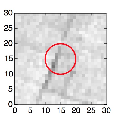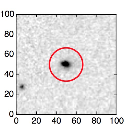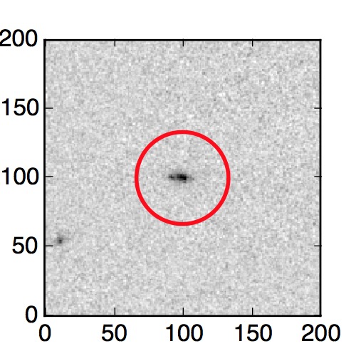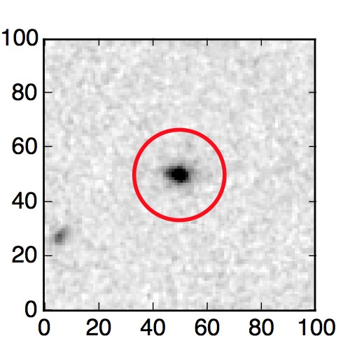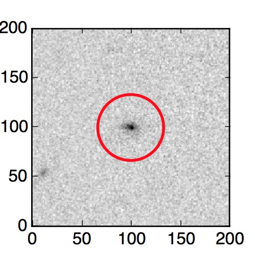 The red circle in the various panels is 1" in radius. The images are 6"x6".