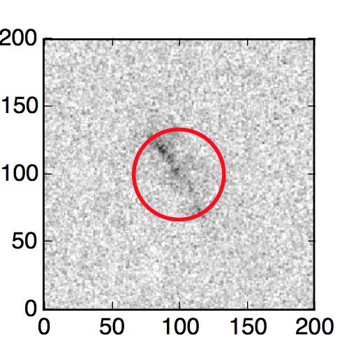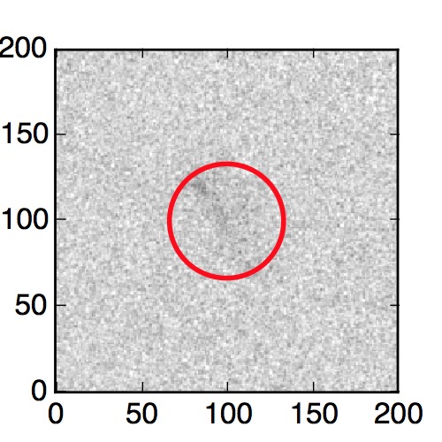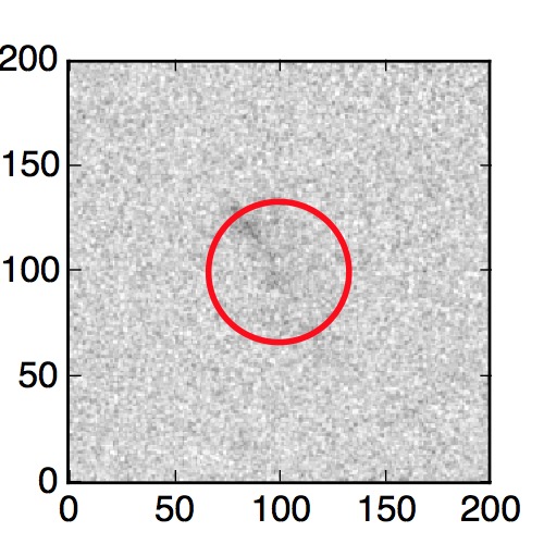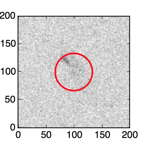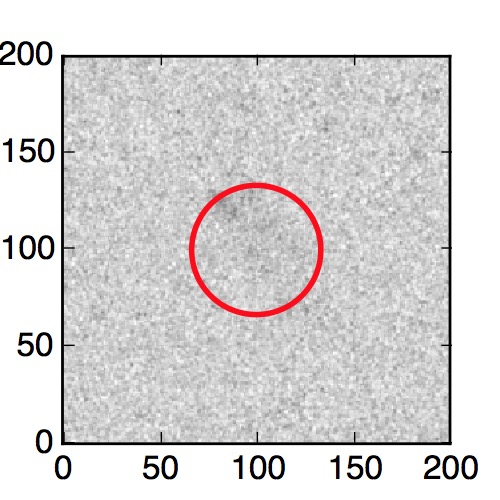 The red circle in the various panels is 1" in radius. The images are 6"x6".