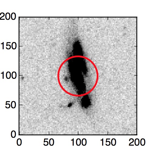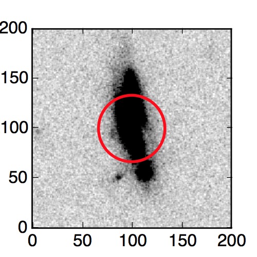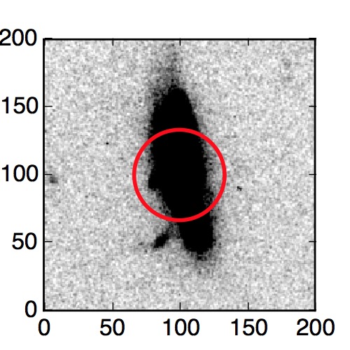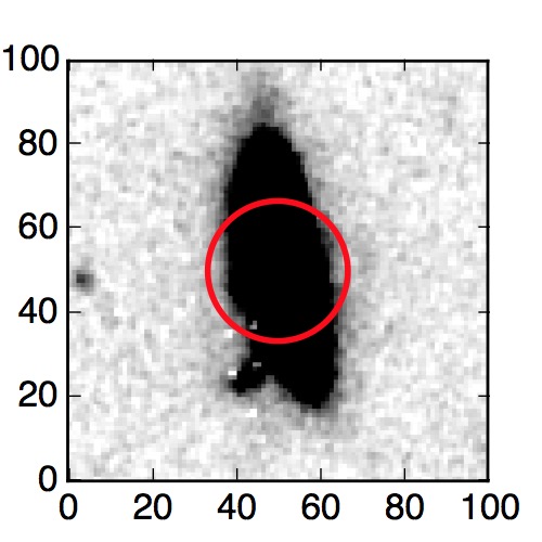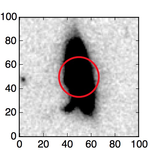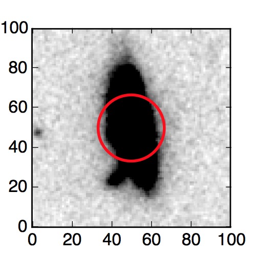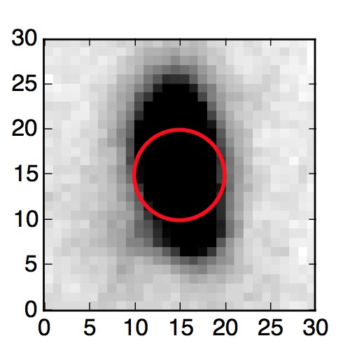 The red circle in the various panels is 1" in radius. The images are 6"x6".