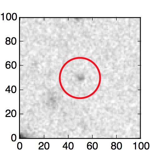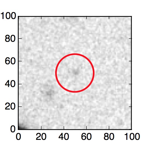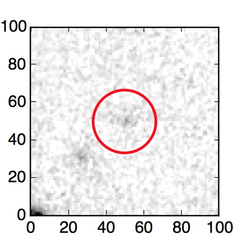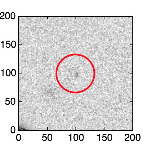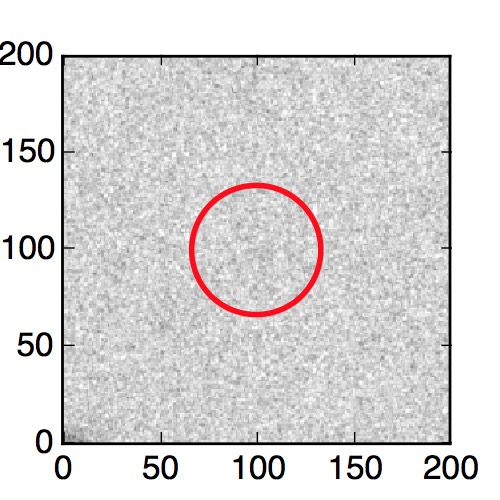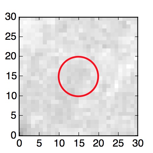 The red circle in the various panels is 1" in radius. The images are 6"x6".