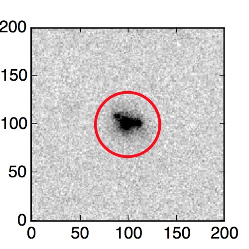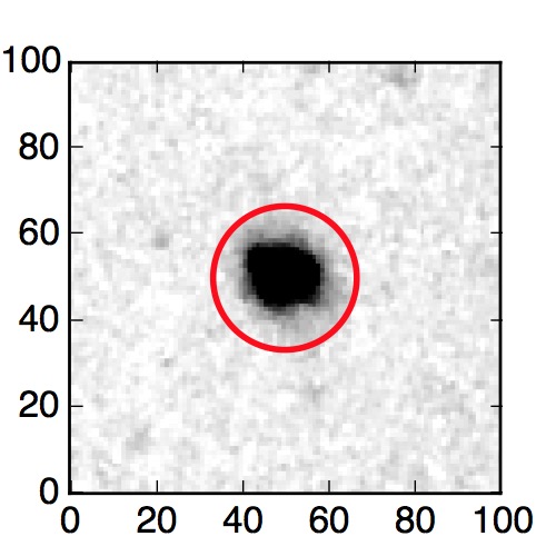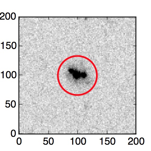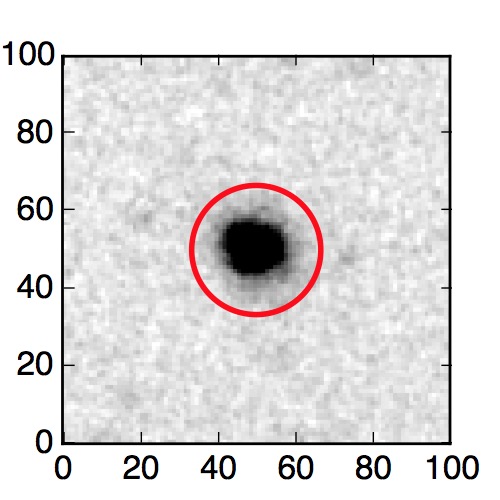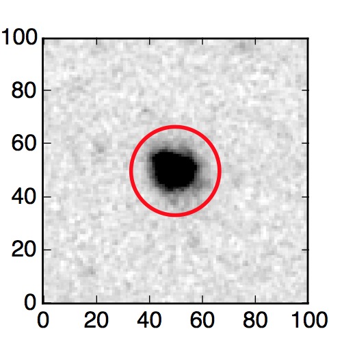 The red circle in the various panels is 1" in radius. The images are 6"x6".