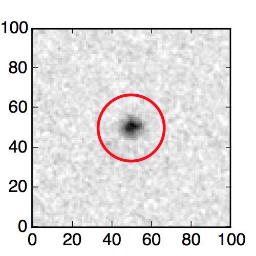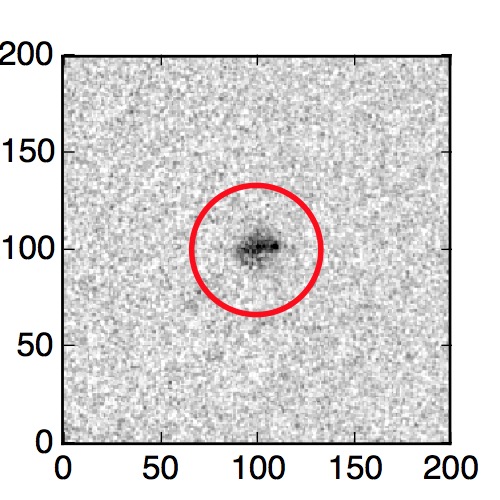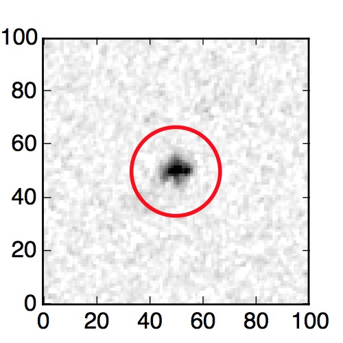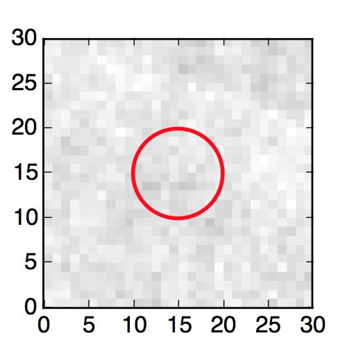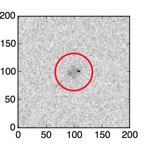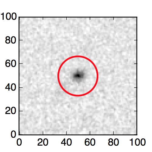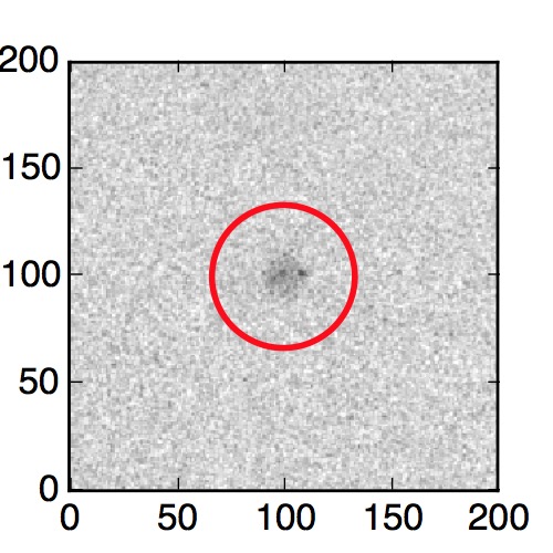 The red circle in the various panels is 1" in radius. The images are 6"x6".