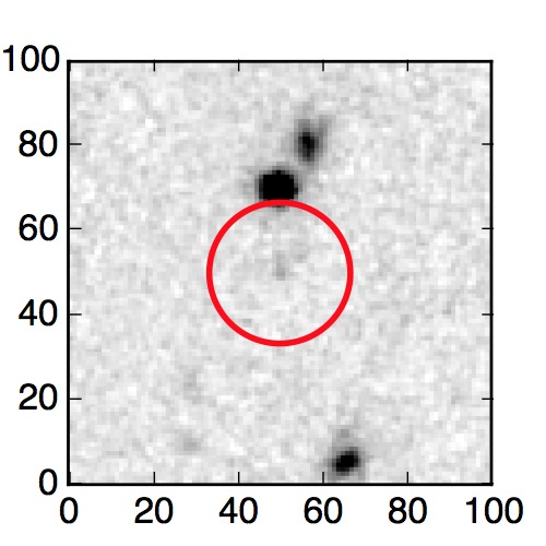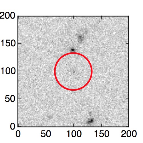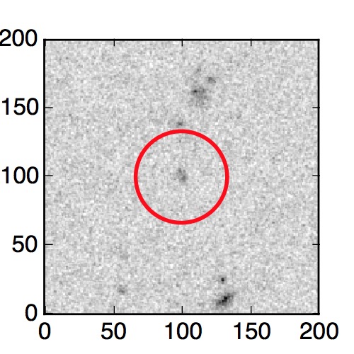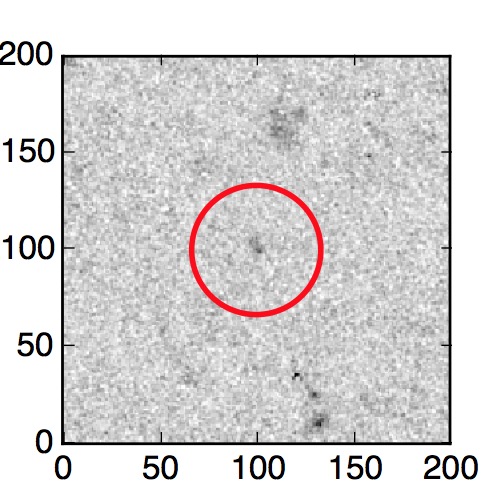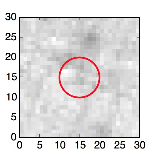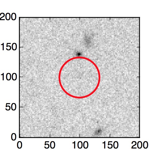 The red circle in the various panels is 1" in radius. The images are 6"x6".