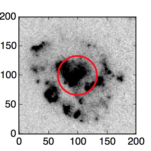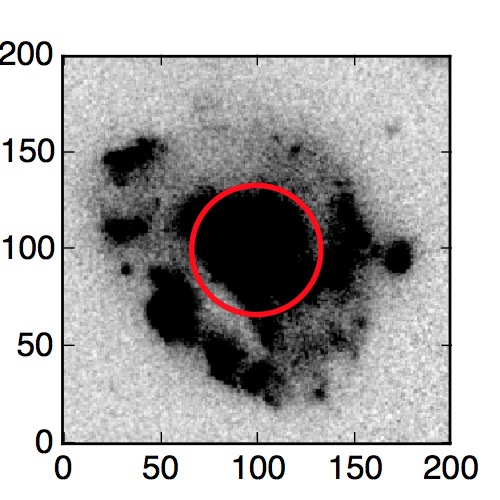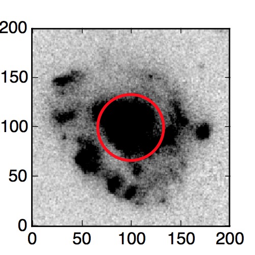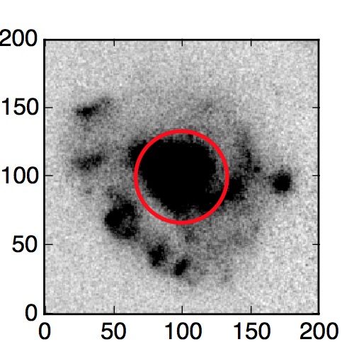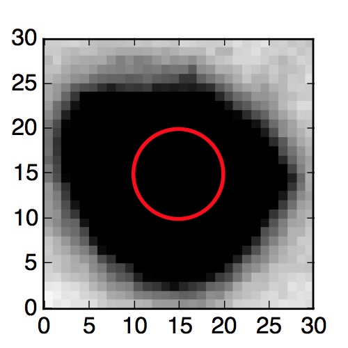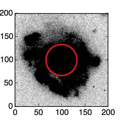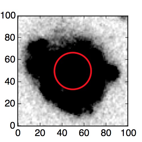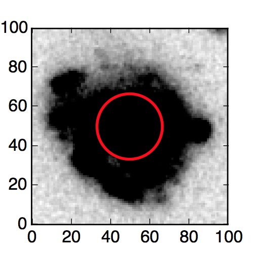 The red circle in the various panels is 1" in radius. The images are 6"x6".
