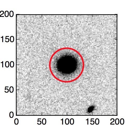 The red circle in the various panels is 1" in radius. The images are 6"x6".