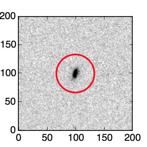 The red circle in the various panels is 1" in radius. The images are 6"x6".