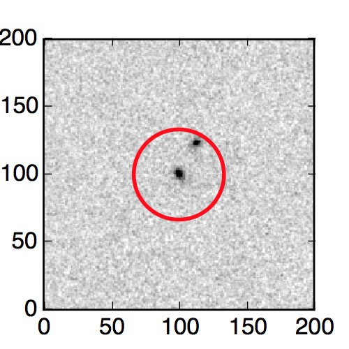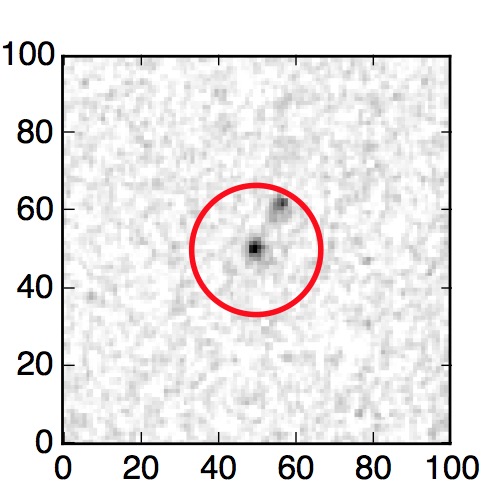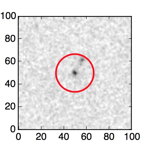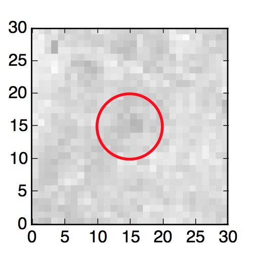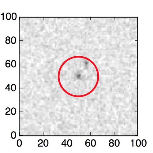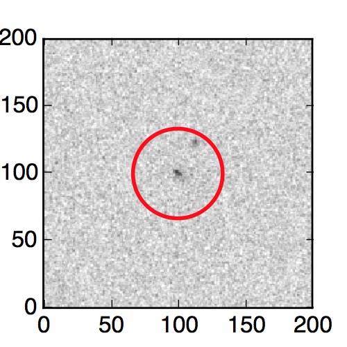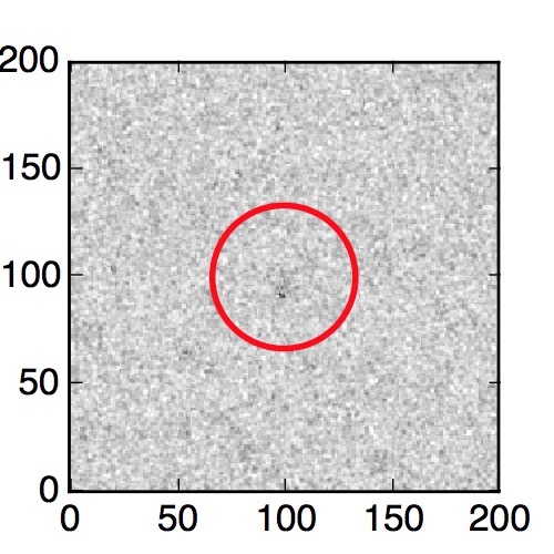 The red circle in the various panels is 1" in radius. The images are 6"x6".