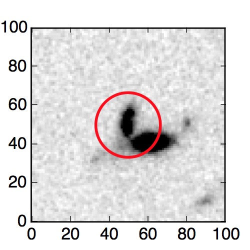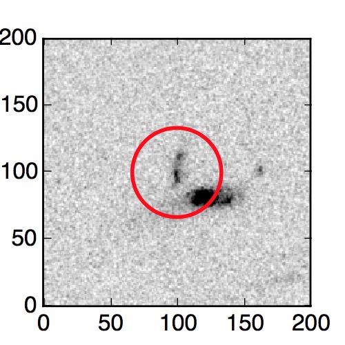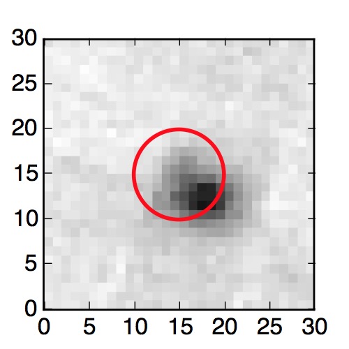 The red circle in the various panels is 1" in radius. The images are 6"x6".