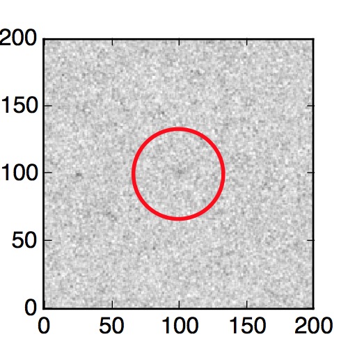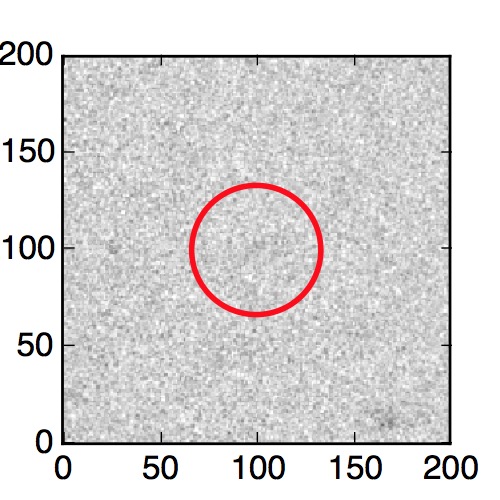 The red circle in the various panels is 1" in radius. The images are 6"x6".