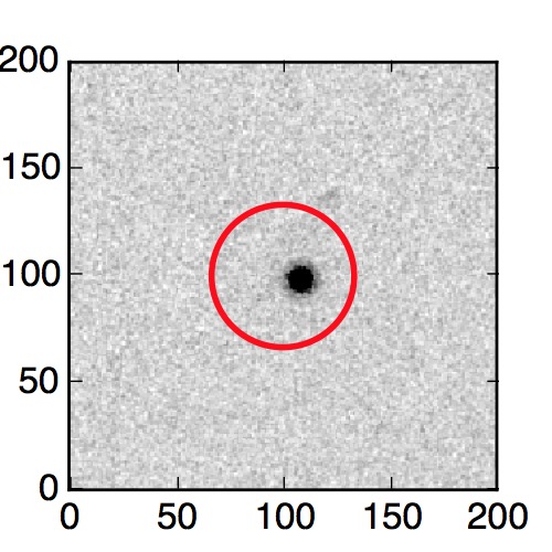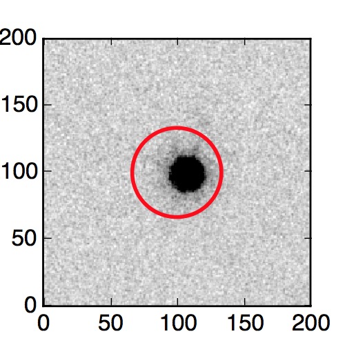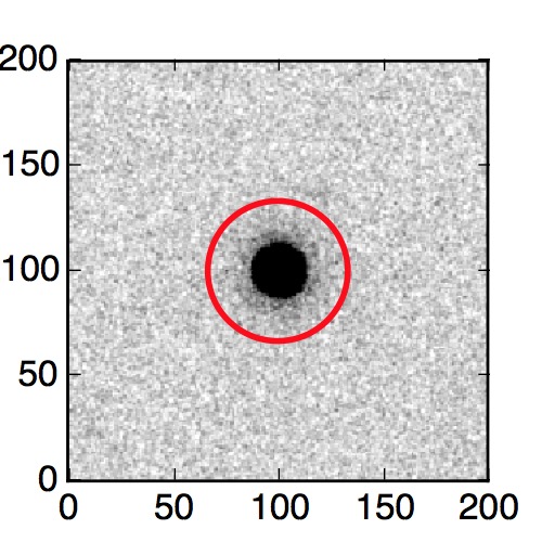 The red circle in the various panels is 1" in radius. The images are 6"x6".