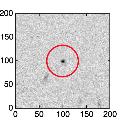 The red circle in the various panels is 1" in radius. The images are 6"x6".