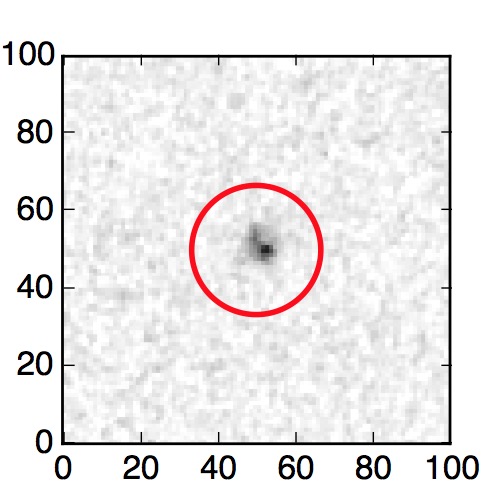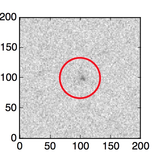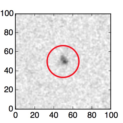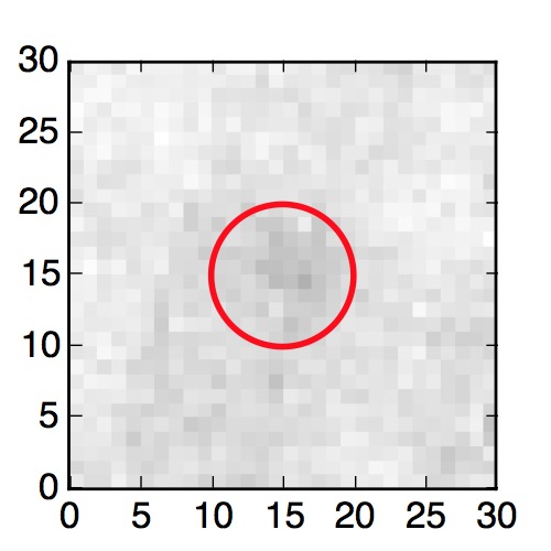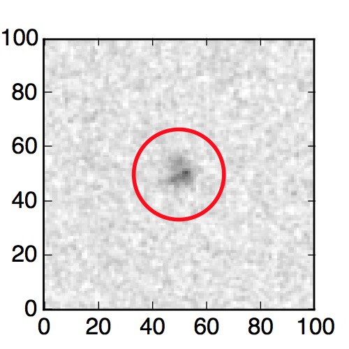 The red circle in the various panels is 1" in radius. The images are 6"x6".