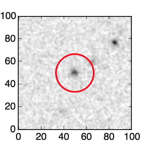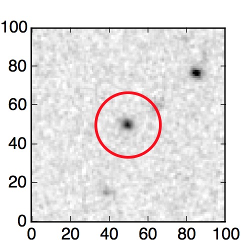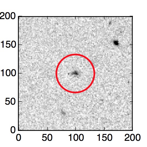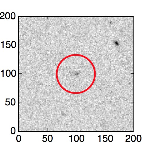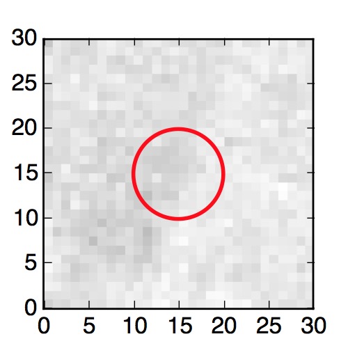 The red circle in the various panels is 1" in radius. The images are 6"x6".