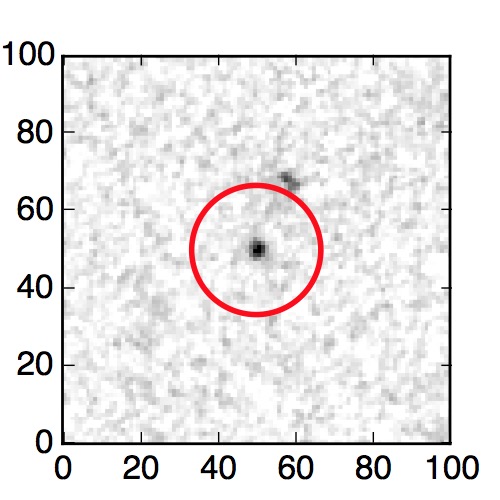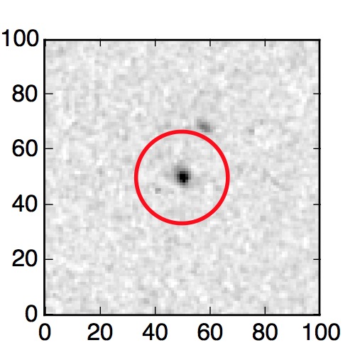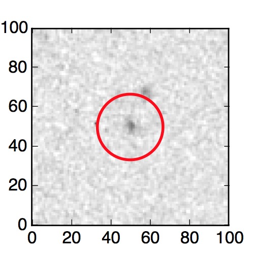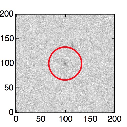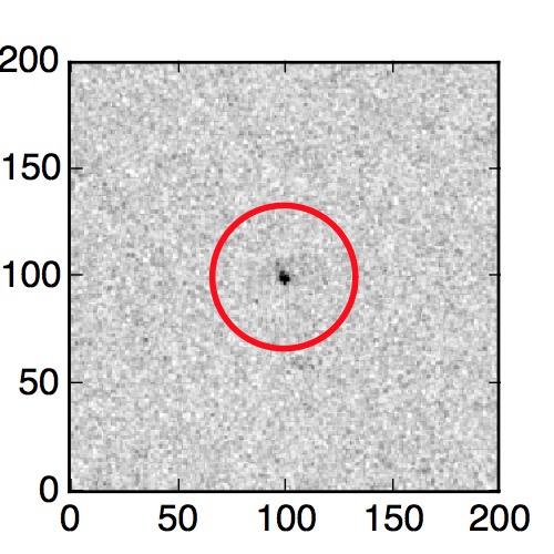 The red circle in the various panels is 1" in radius. The images are 6"x6".