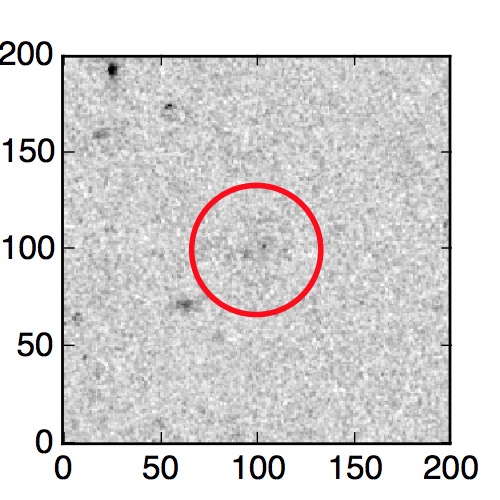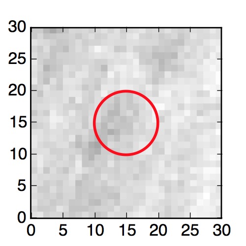 The red circle in the various panels is 1" in radius. The images are 6"x6".