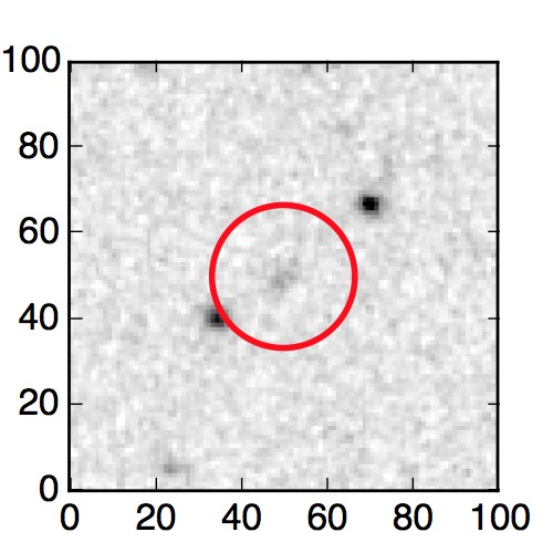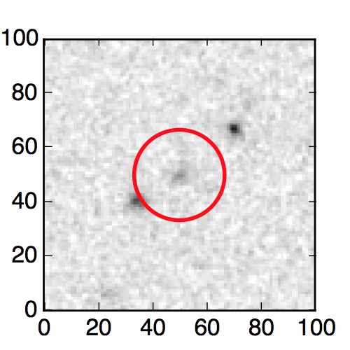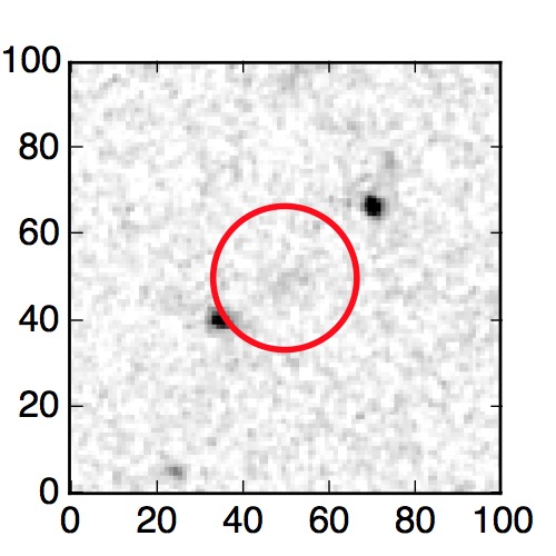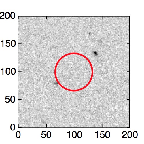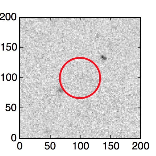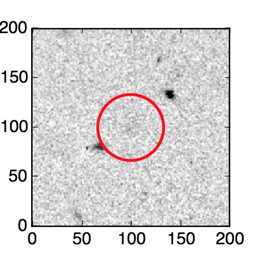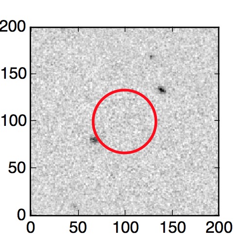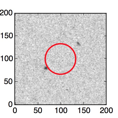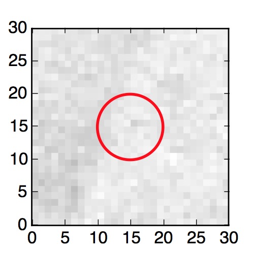 The red circle in the various panels is 1" in radius. The images are 6"x6".