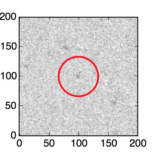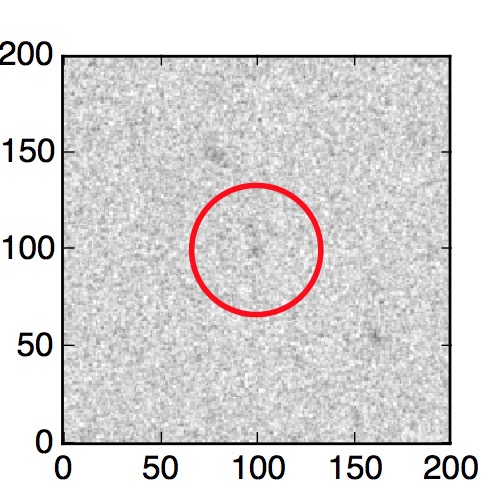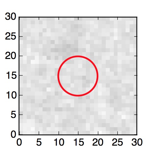 The red circle in the various panels is 1" in radius. The images are 6"x6".