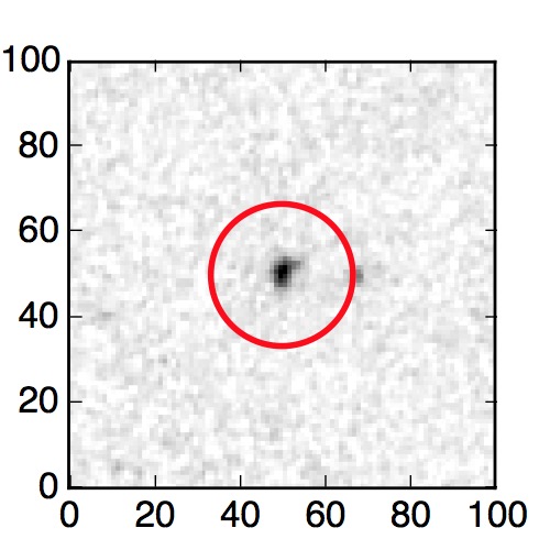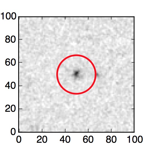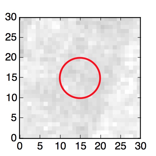 The red circle in the various panels is 1" in radius. The images are 6"x6".