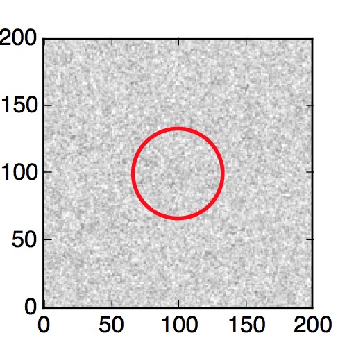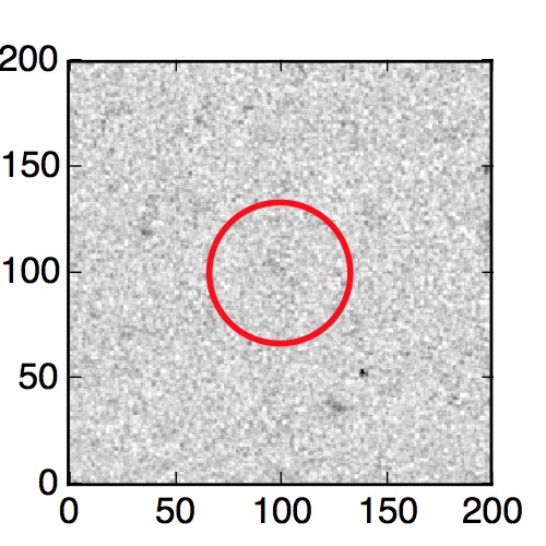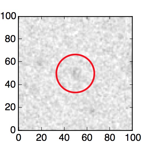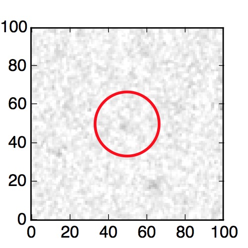 The red circle in the various panels is 1" in radius. The images are 6"x6".