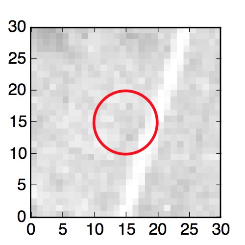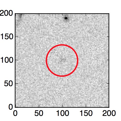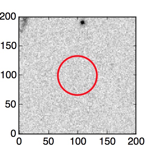 The red circle in the various panels is 1" in radius. The images are 6"x6".