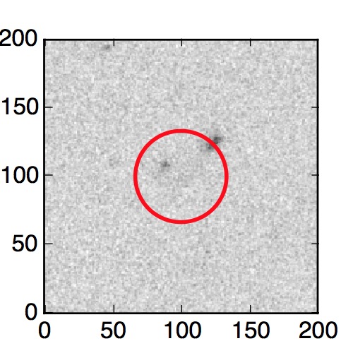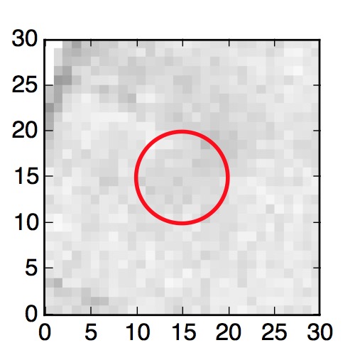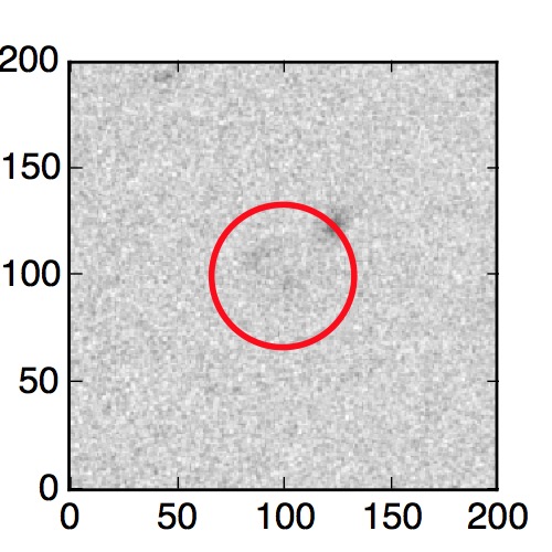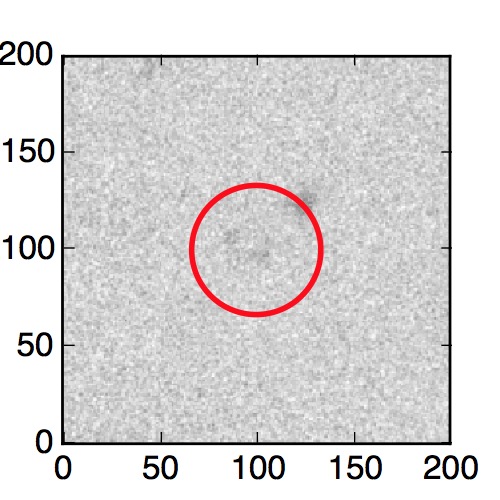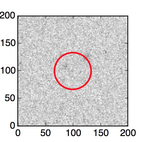 The red circle in the various panels is 1" in radius. The images are 6"x6".