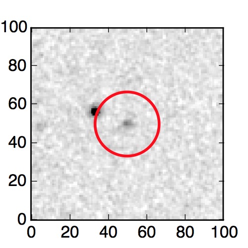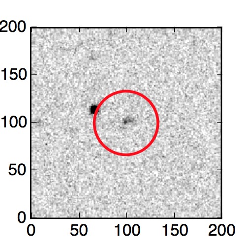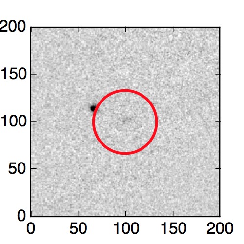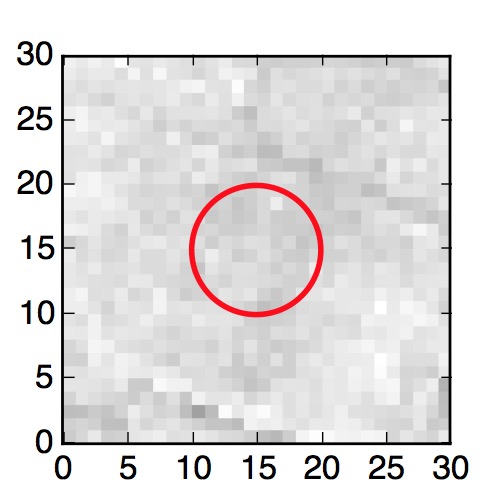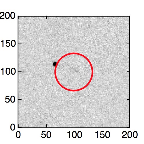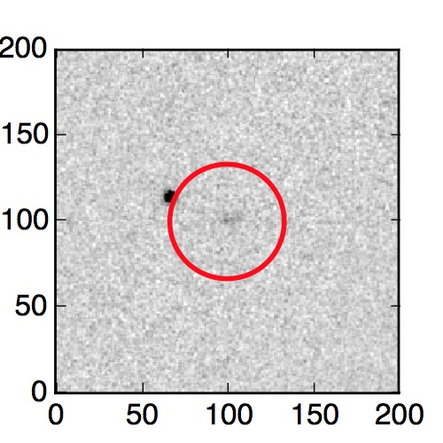 The red circle in the various panels is 1" in radius. The images are 6"x6".