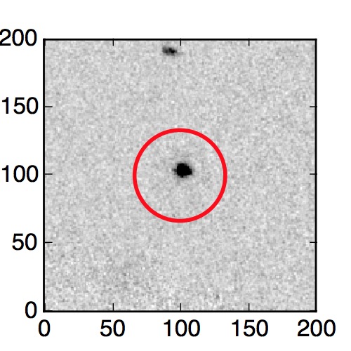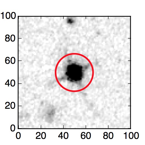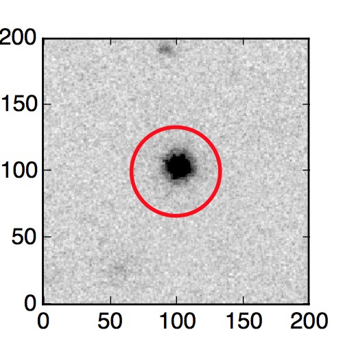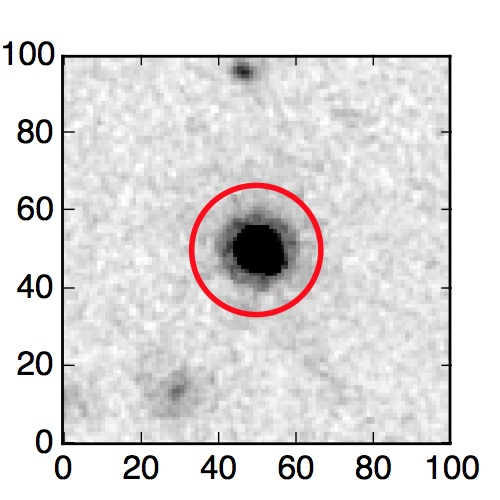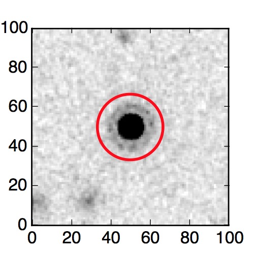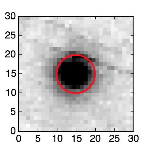 The red circle in the various panels is 1" in radius. The images are 6"x6".