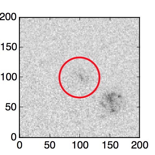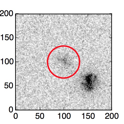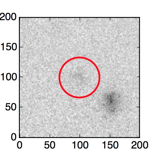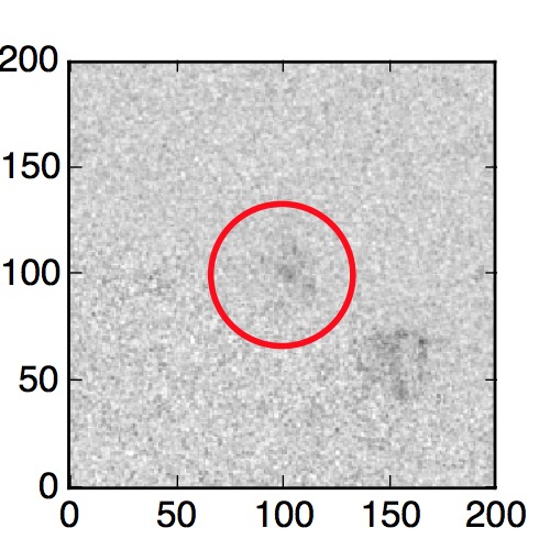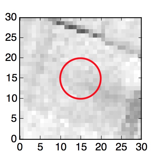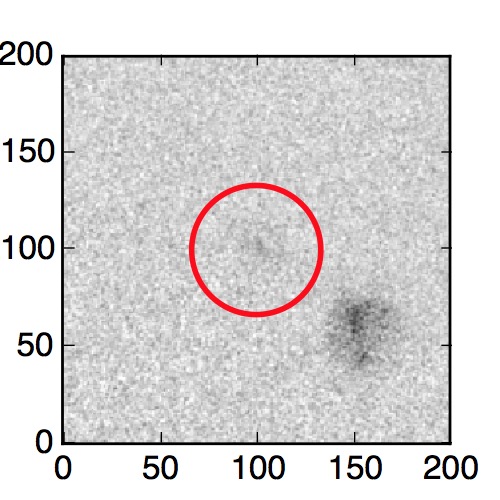 The red circle in the various panels is 1" in radius. The images are 6"x6".