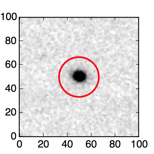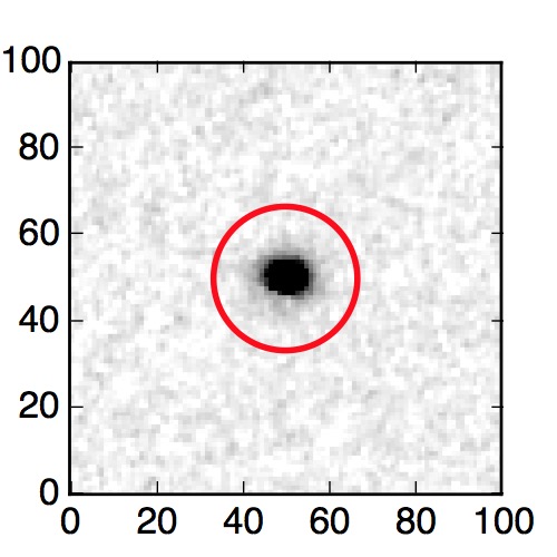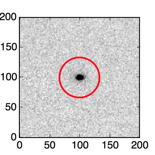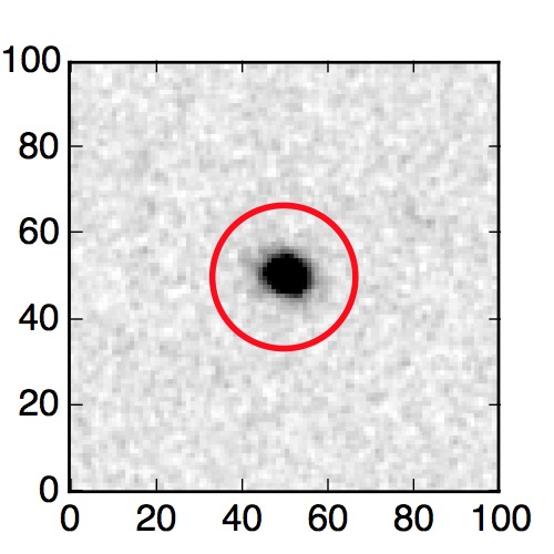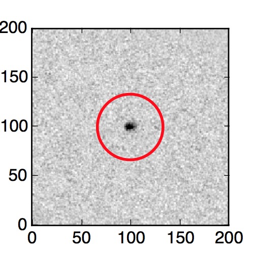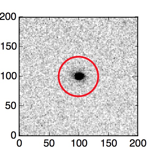 The red circle in the various panels is 1" in radius. The images are 6"x6".
