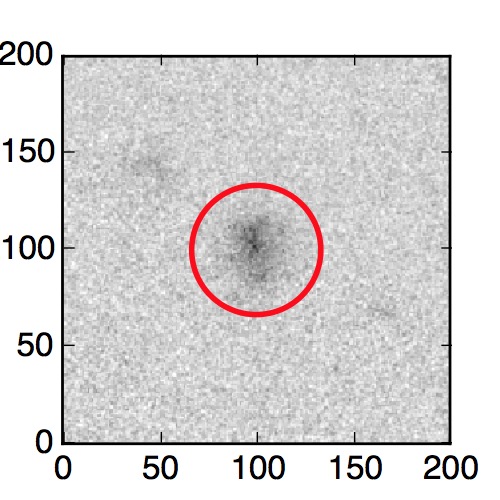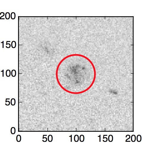The red circle in the various panels is 1" in radius. The images are 6"x6".