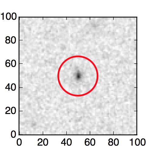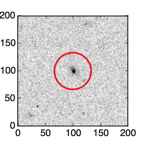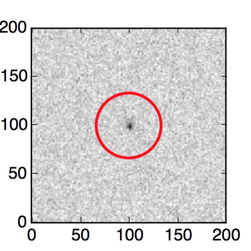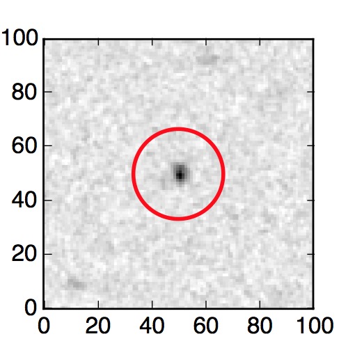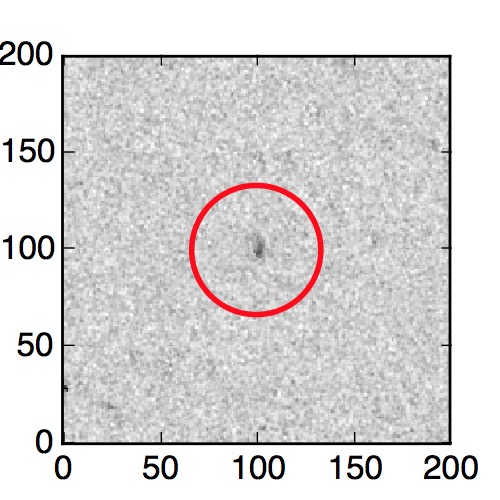 The red circle in the various panels is 1" in radius. The images are 6"x6".