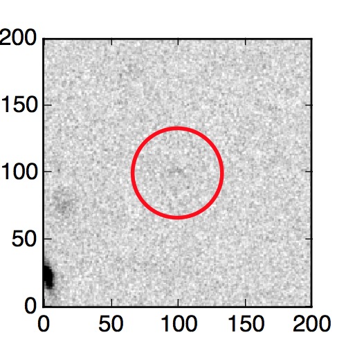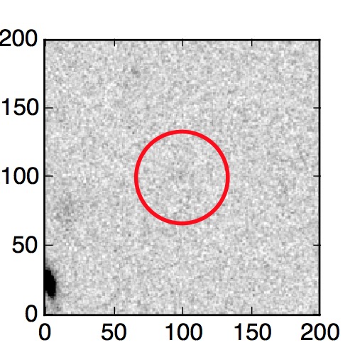 The red circle in the various panels is 1" in radius. The images are 6"x6".