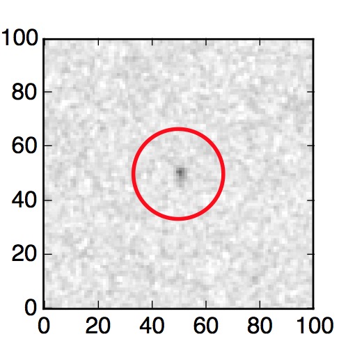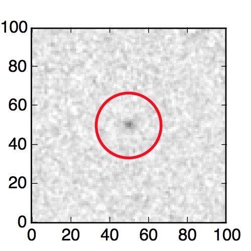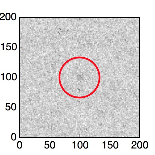 The red circle in the various panels is 1" in radius. The images are 6"x6".