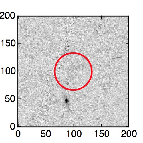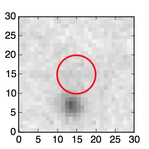 The red circle in the various panels is 1" in radius. The images are 6"x6".