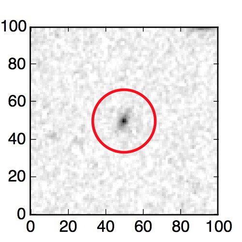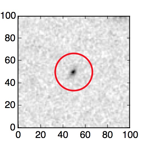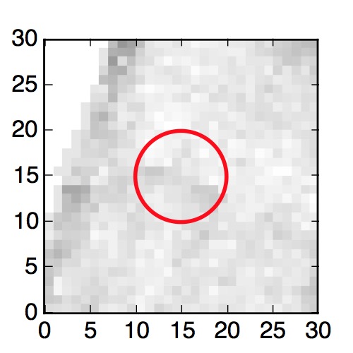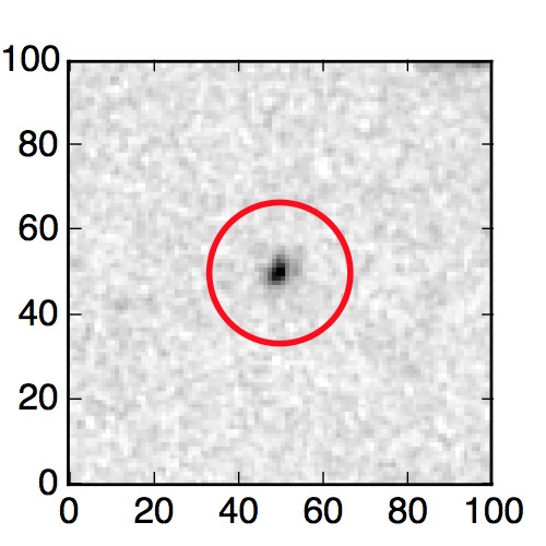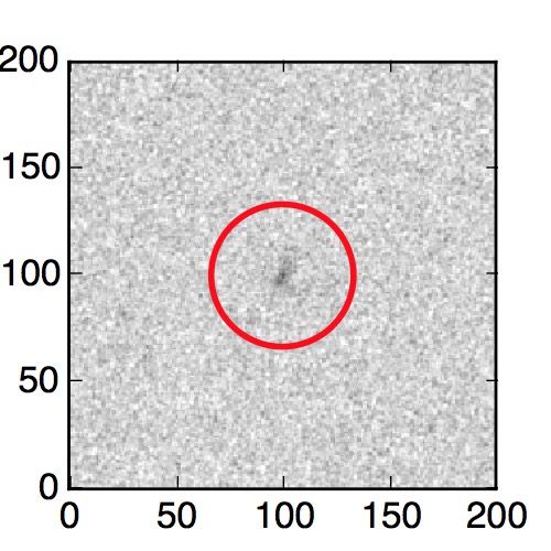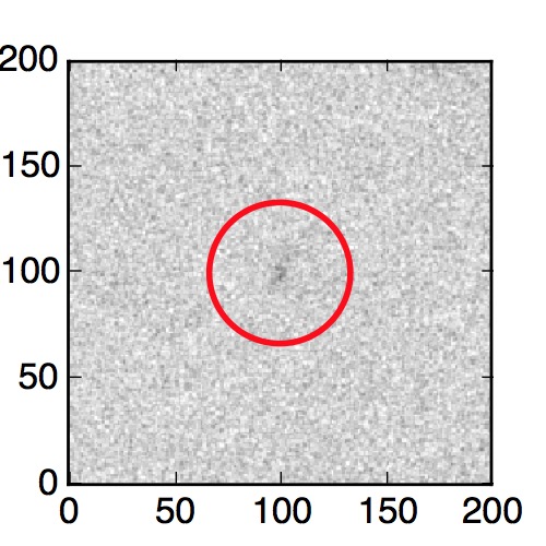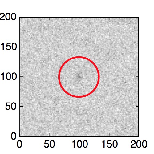 The red circle in the various panels is 1" in radius. The images are 6"x6".