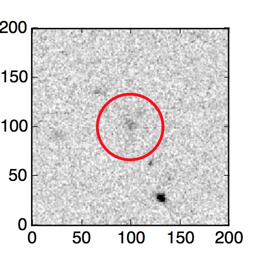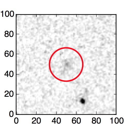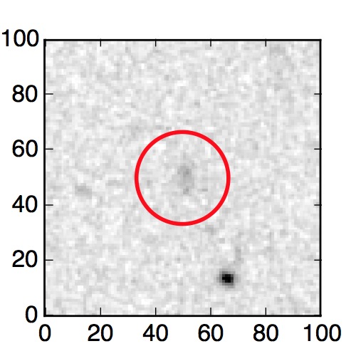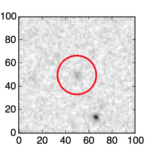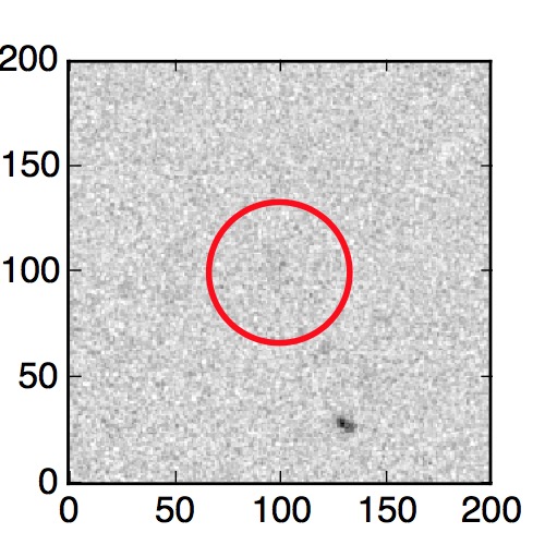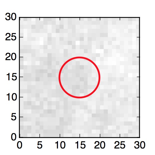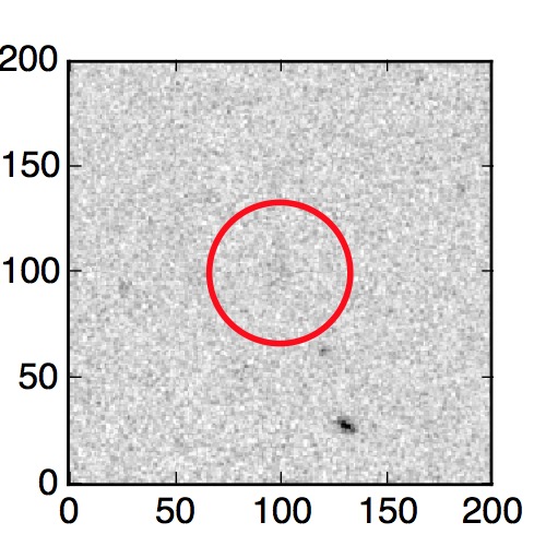 The red circle in the various panels is 1" in radius. The images are 6"x6".
