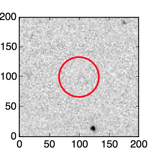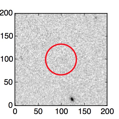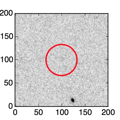 The red circle in the various panels is 1" in radius. The images are 6"x6".