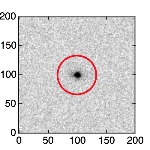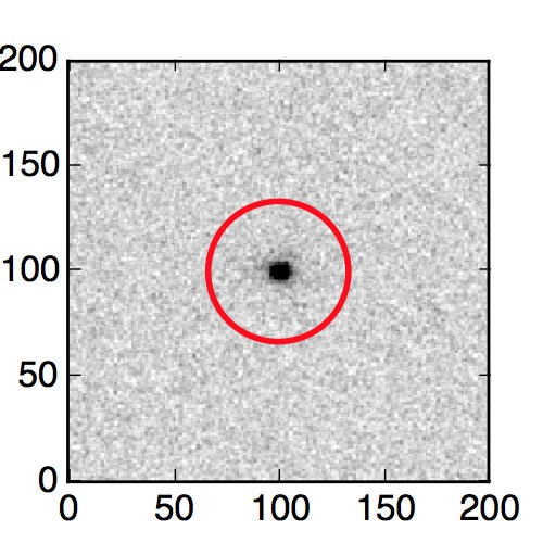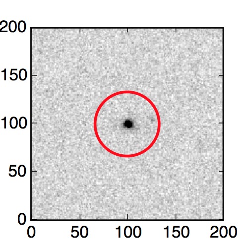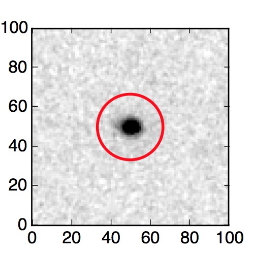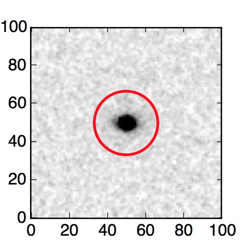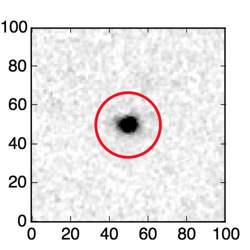 The red circle in the various panels is 1" in radius. The images are 6"x6".