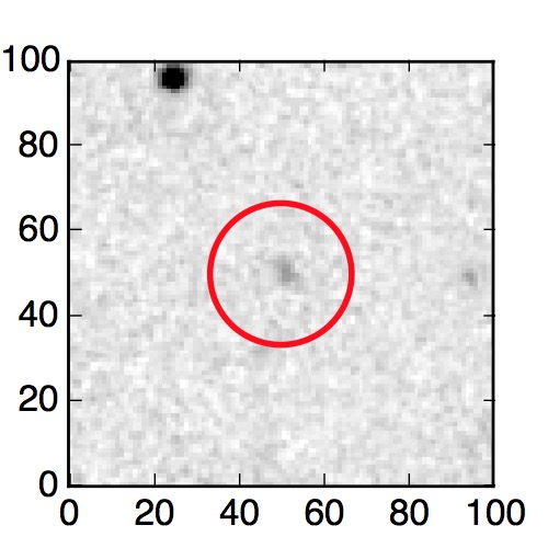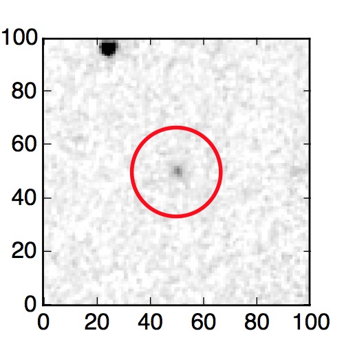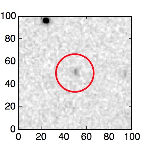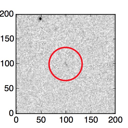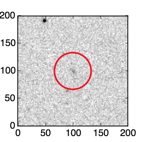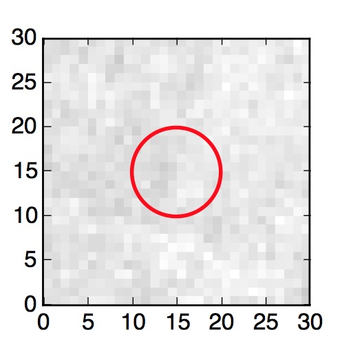 The red circle in the various panels is 1" in radius. The images are 6"x6".