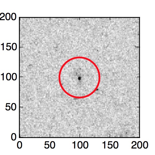 The red circle in the various panels is 1" in radius. The images are 6"x6".