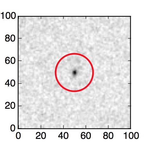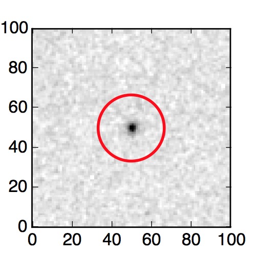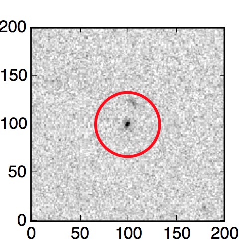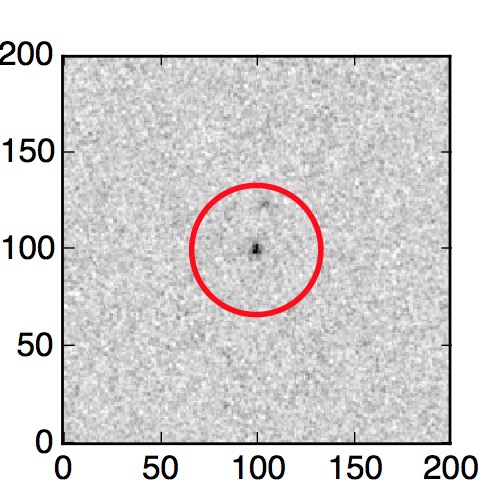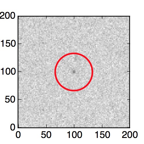 The red circle in the various panels is 1" in radius. The images are 6"x6".