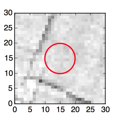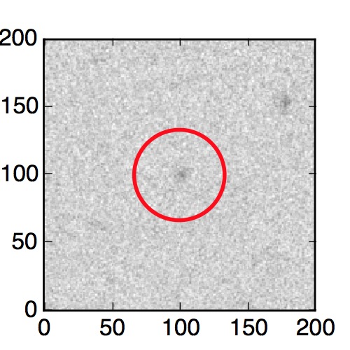The red circle in the various panels is 1" in radius. The images are 6"x6".