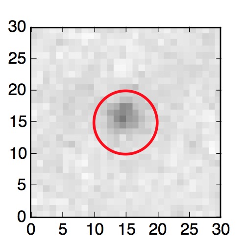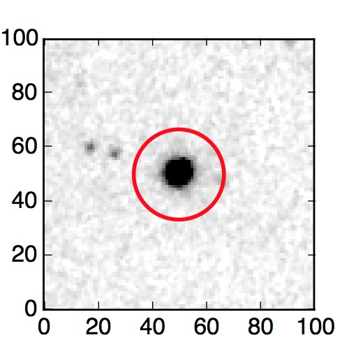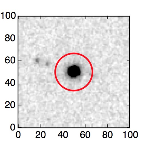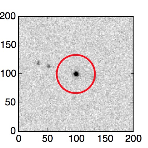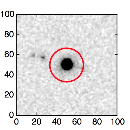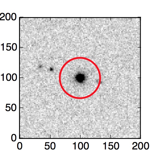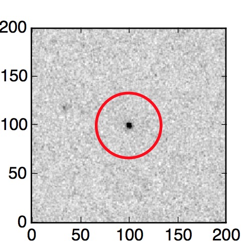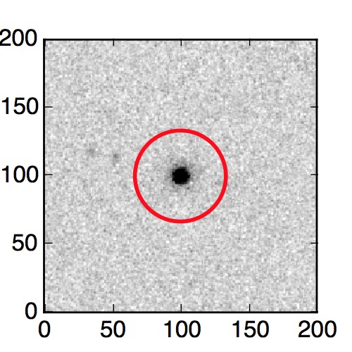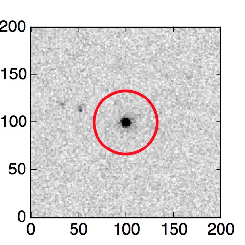 The red circle in the various panels is 1" in radius. The images are 6"x6".