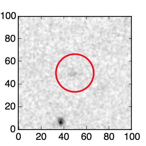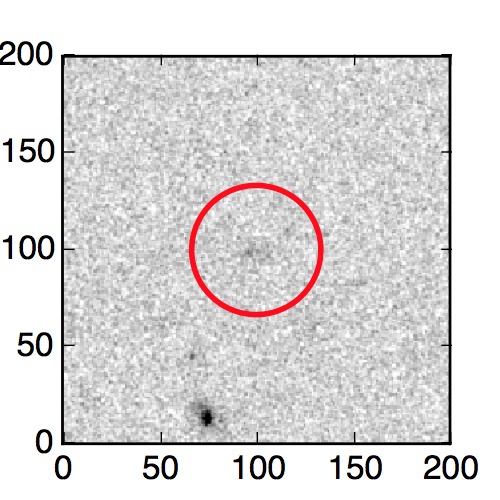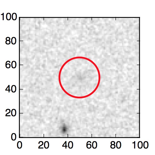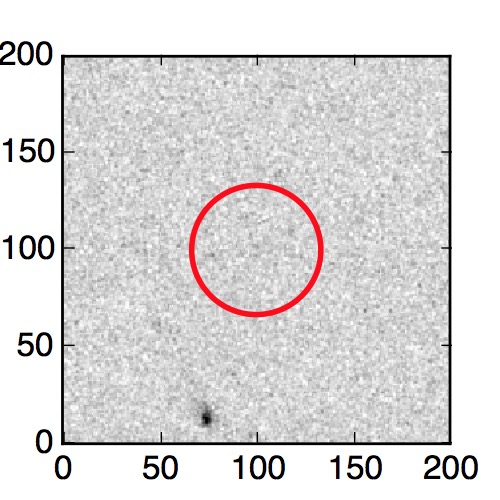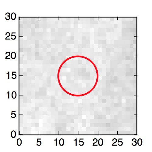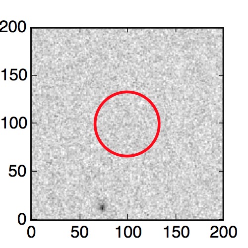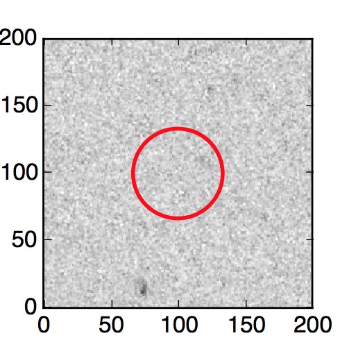 The red circle in the various panels is 1" in radius. The images are 6"x6".