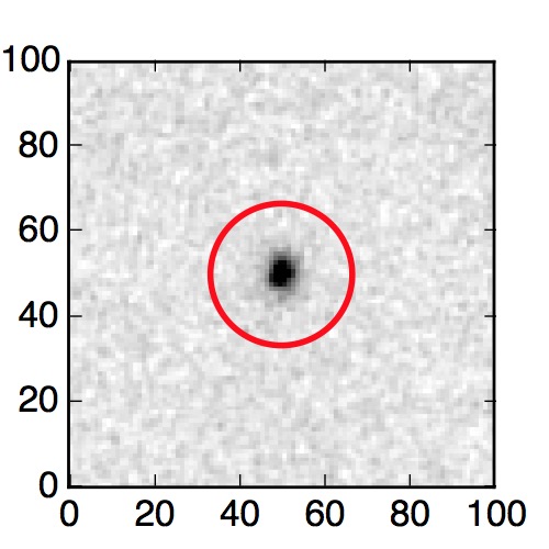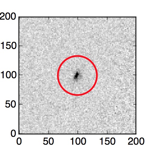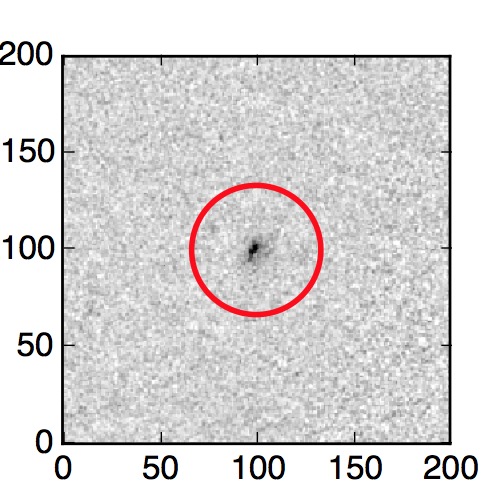 The red circle in the various panels is 1" in radius. The images are 6"x6".