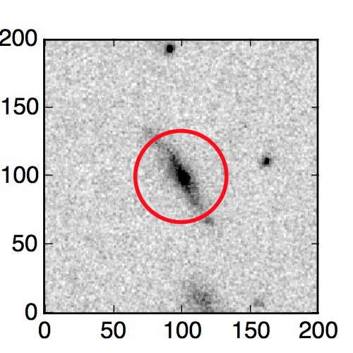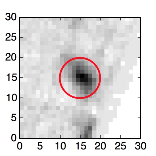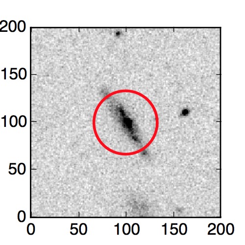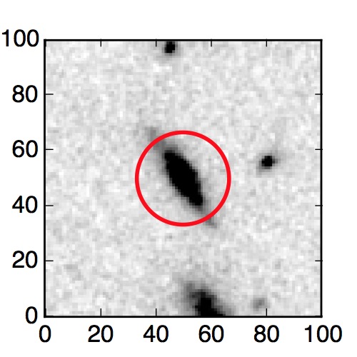 The red circle in the various panels is 1" in radius. The images are 6"x6".