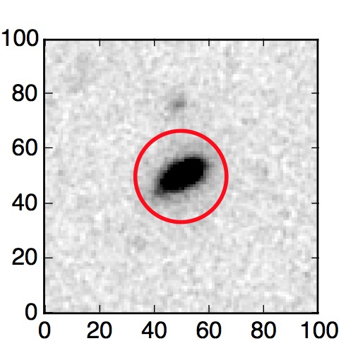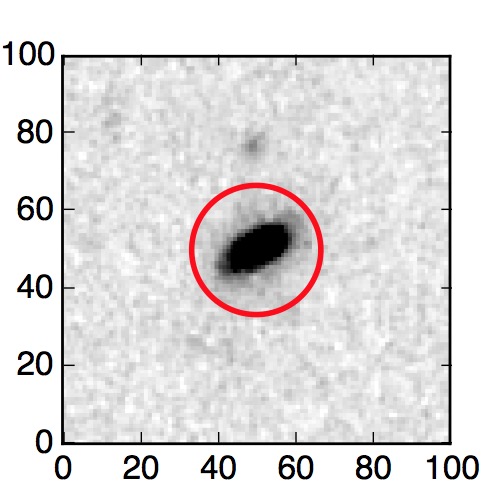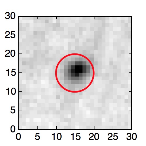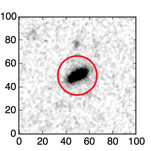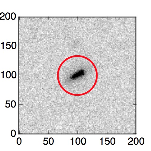 The red circle in the various panels is 1" in radius. The images are 6"x6".
